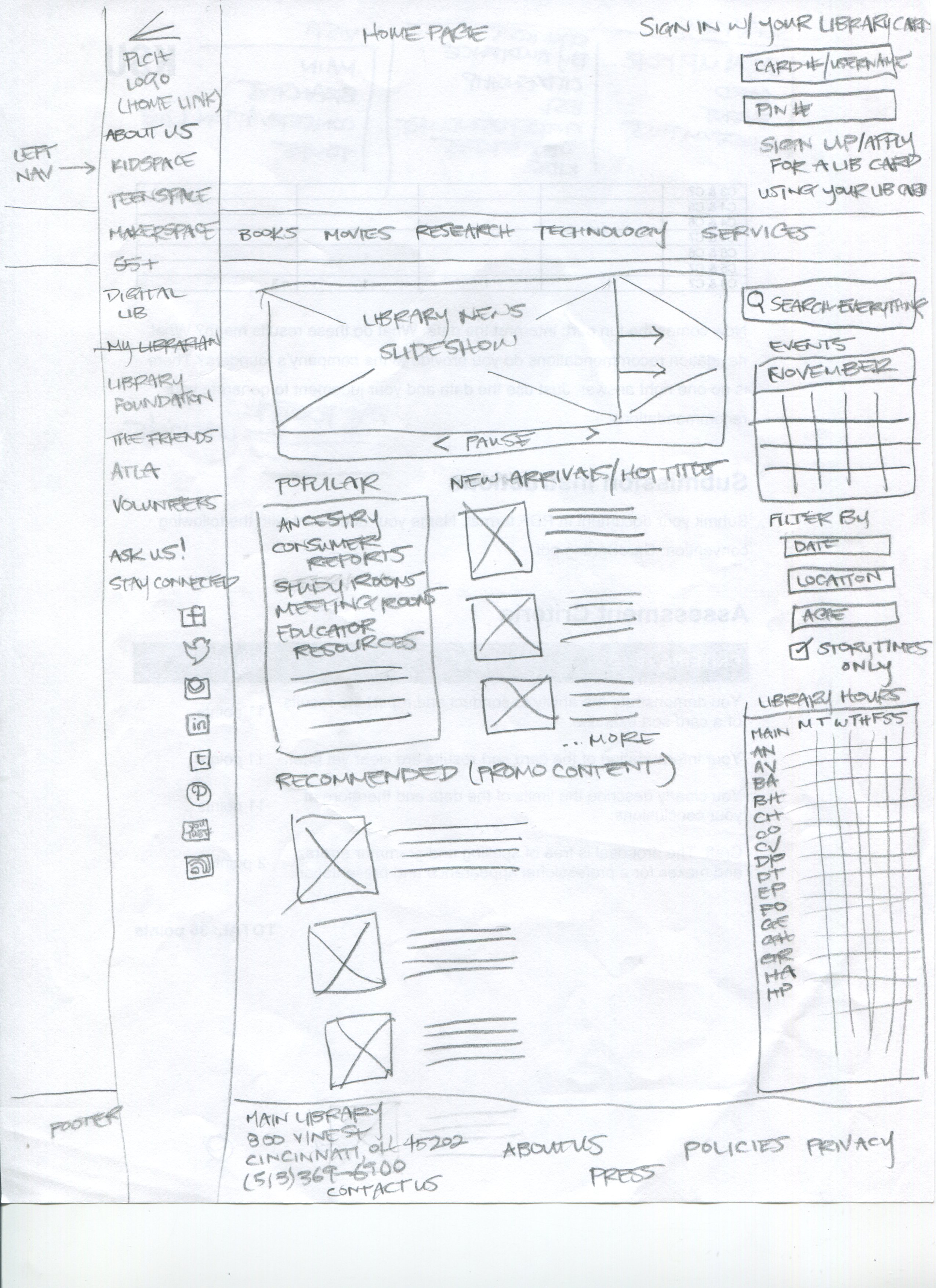 When my Information Architecture class presented an opportunity to re-imagine a public-facing library website from the ground up, I was thrilled to take on the challenge. Having worked at the Cincinnati Public Library (PLCH) for many years, I was able to use my existing domain knowledge and connections with current stakeholders to enrich my research and findings.